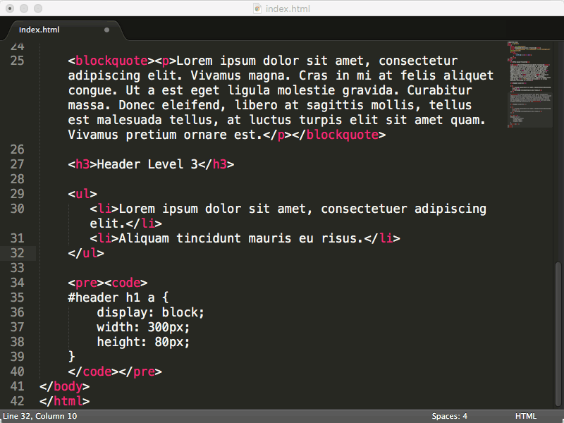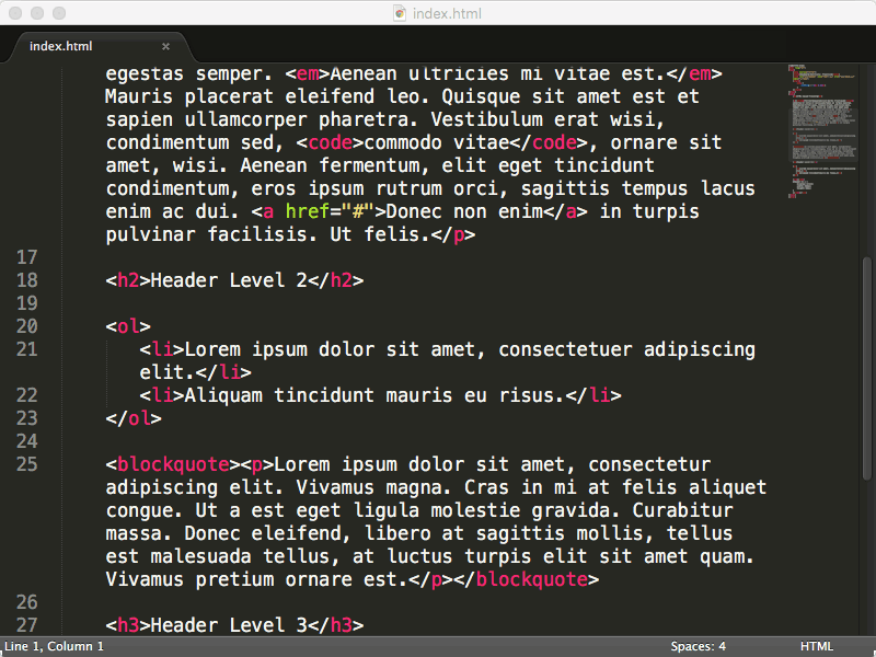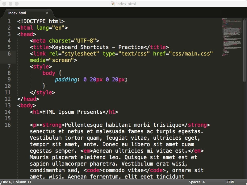 Every editor comes with a ton of keyboard shortcuts that help cut down on the amount of time you spend writing code. It would be almost impossible to list all of them here, so for brevity we've highlighted the most useful commands for Sublime Text and Atom.